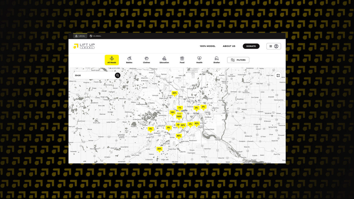 A full brand launch and an interactive giving platform that connects donors with local and global needs through a dynamic map and empowers local organizations to manage and fulfill those needs directly.